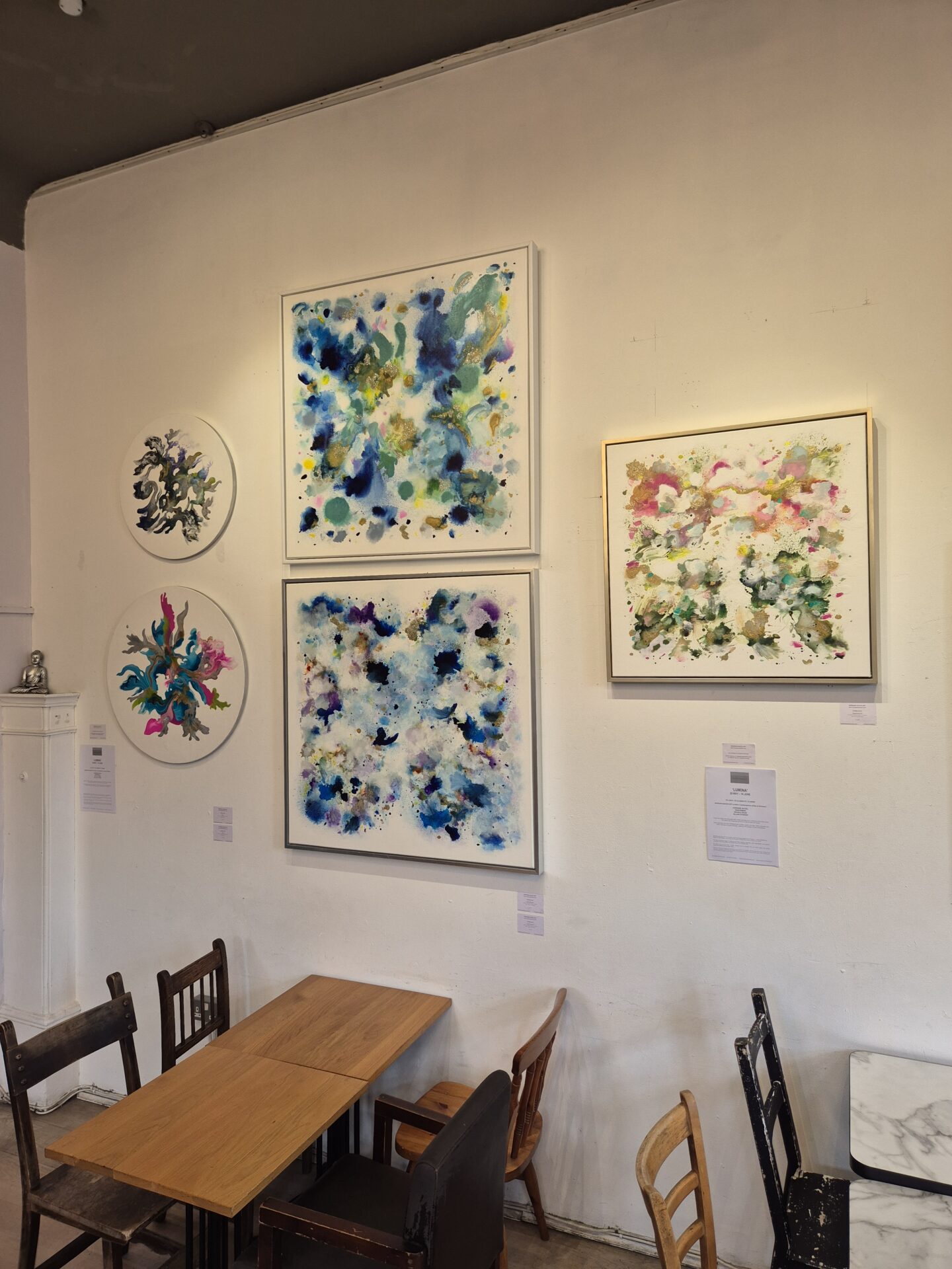 As a local business, we are delighted to be collaborating with Omnibus Theatre again to exhibit artwork in the heart of Clapham Old Town, London. This summer, we bring together 4 contemporary artists who use light in their paintings in different ways. The exhibiting artists are: Corinne Natel, Rakerman, Nicole Rose & Allan Storer.