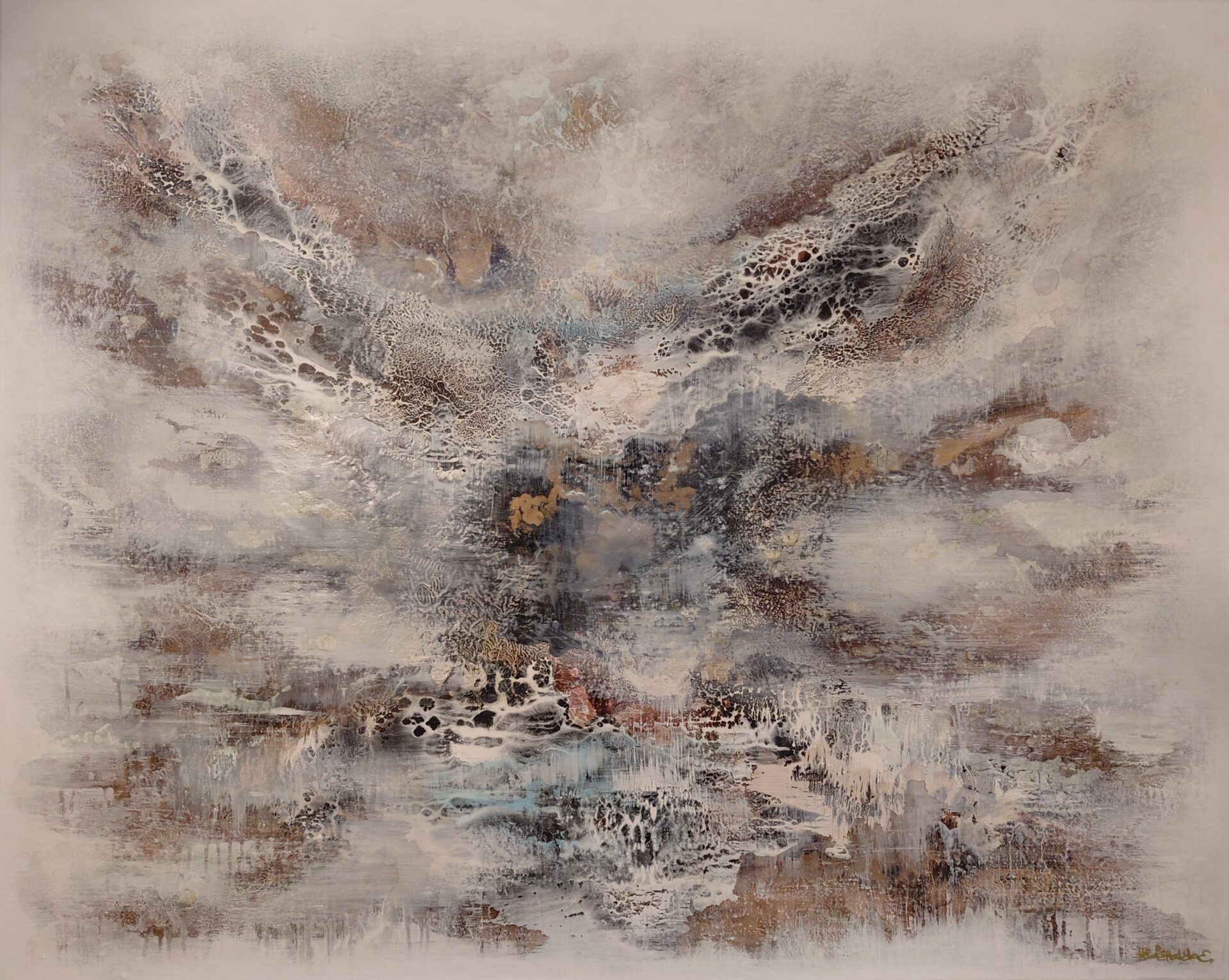 The artist’s powerful and atmospheric canvases are the result of her continual exploration of colour, light and depth. Henrie’s semi-abstract work is reminiscent of the Romantic landscape and seascape paintings of Turner.