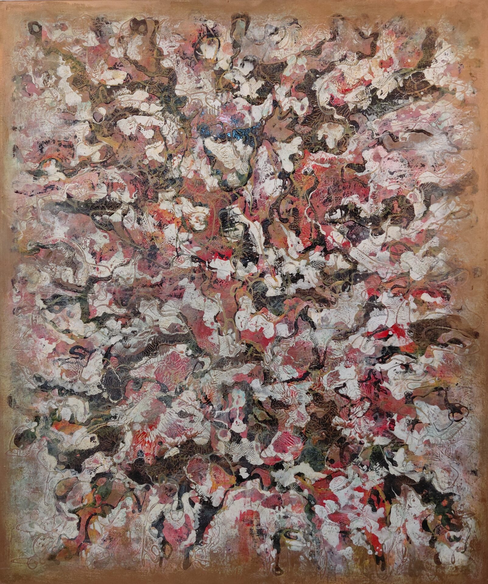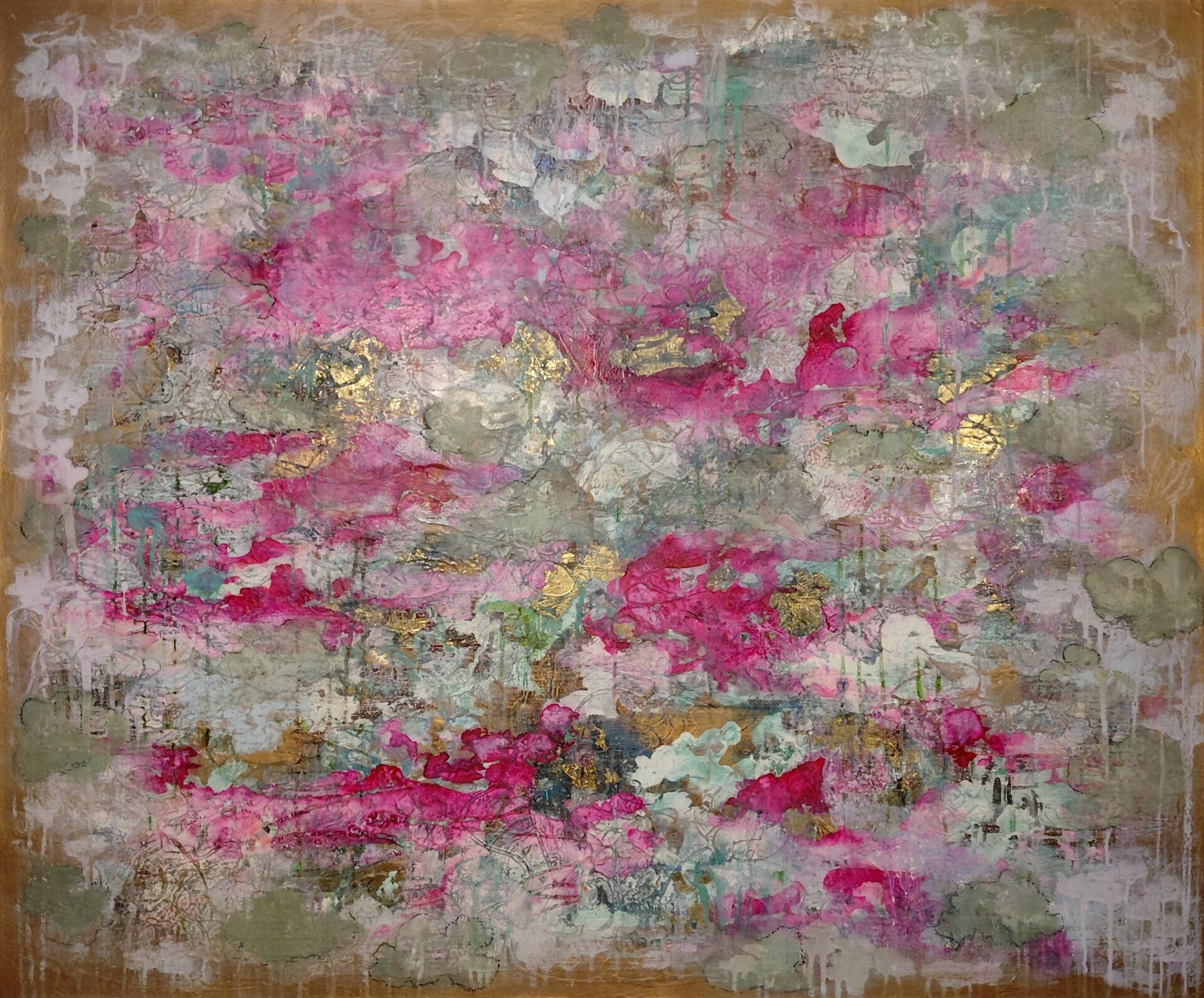 In Haldane’s use of deep canvas stretchers, where the paint is allowed to follow, the composition is given a sense of freedom and is unconstrained like the landscape it reflects. The artist paints mainly with oils, mixed with linseed oil, gesso and scumble glaze. Haldane will subtly weave in gold or silver leaf to intensify the texture of composition, building up layers and injecting depth into the canvas.